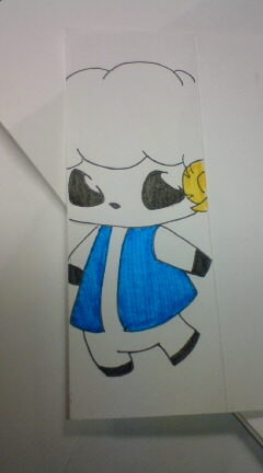 これをラミネートして穴開けてリボン付けてーって感じになります。